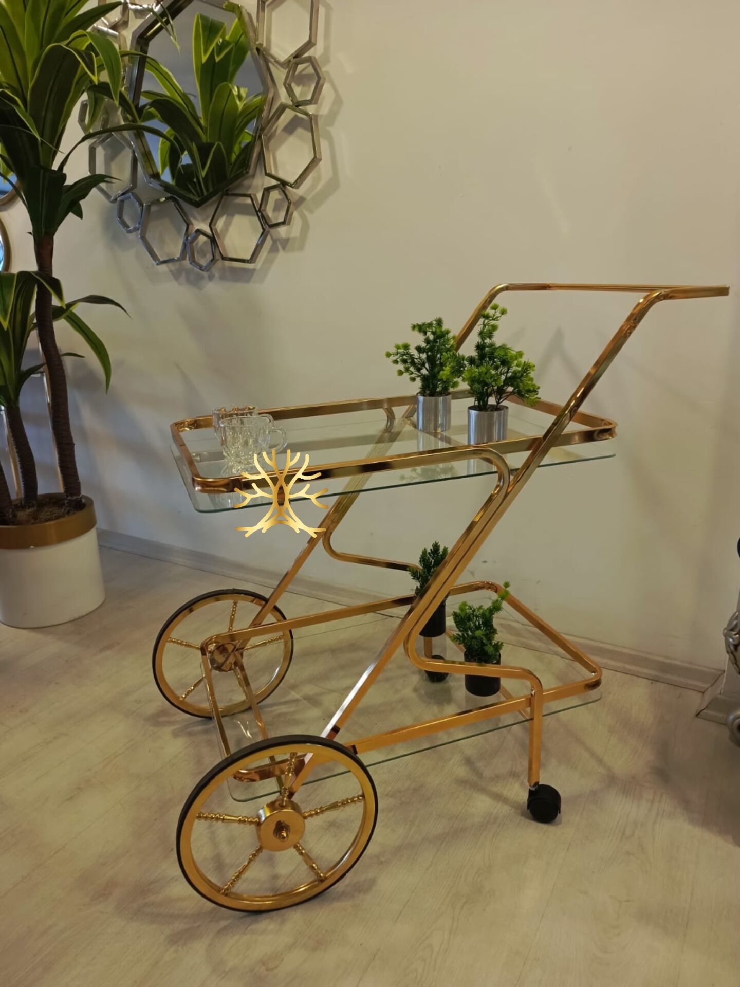 Nora Servis Arabası Gold- Şeffaf Cam